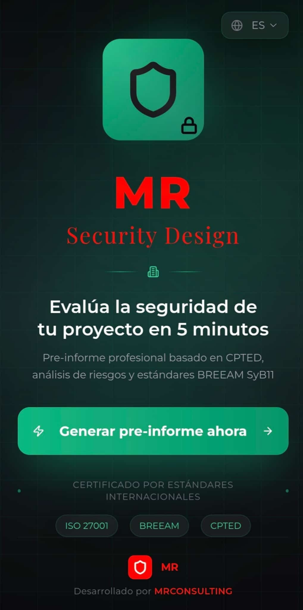 En MRConsulting desarrollamos Informes de Seguridad para BREEAM que integran la prevención del delito, la resiliencia del edificio y la seguridad por diseño desde las fases iniciales del proyecto. Nuestro enfoque combina la metodología CPTED, el análisis de amenazas reales y la evaluación técnica de los cuatro anillos de protección: entorno, perímetro, envolvente y uso del espacio.